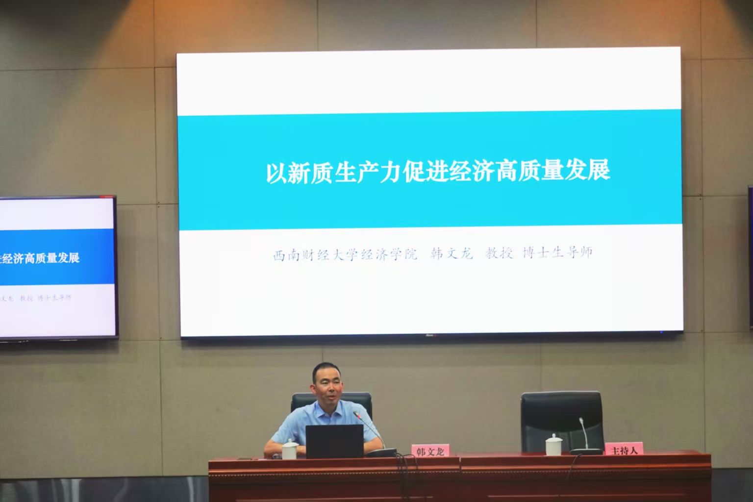 韩文龙以“为什么—是什么—怎么办—重要着力点—比较与借鉴—赋能中国经济高质量发展”为逻辑主线,系统阐释了新质生产力的时代背景、理论内涵与实践路径。他系统梳理了习近平总书记关于新质生产力的重要论述,强调新质生产力具有显著的创新驱动、数字化、智能化、绿色化等特征。他结合新一轮科技革命与产业变革的国际趋势,深入分析了新质生产力对突破传统增长模式、提升全要素生产率、重塑现代化产业体系的重大意义。在实践路径方面,他提出应通过创新人才培养、关键技术攻关、完善现代化产业体系、建设全国统一大市场等多维举措,充分发挥数字经济、战略性新兴产业和未来产业的引领作用,加快形成具有国际竞争力的新质生产力体系,为中国经济高质量发展注入新动能。