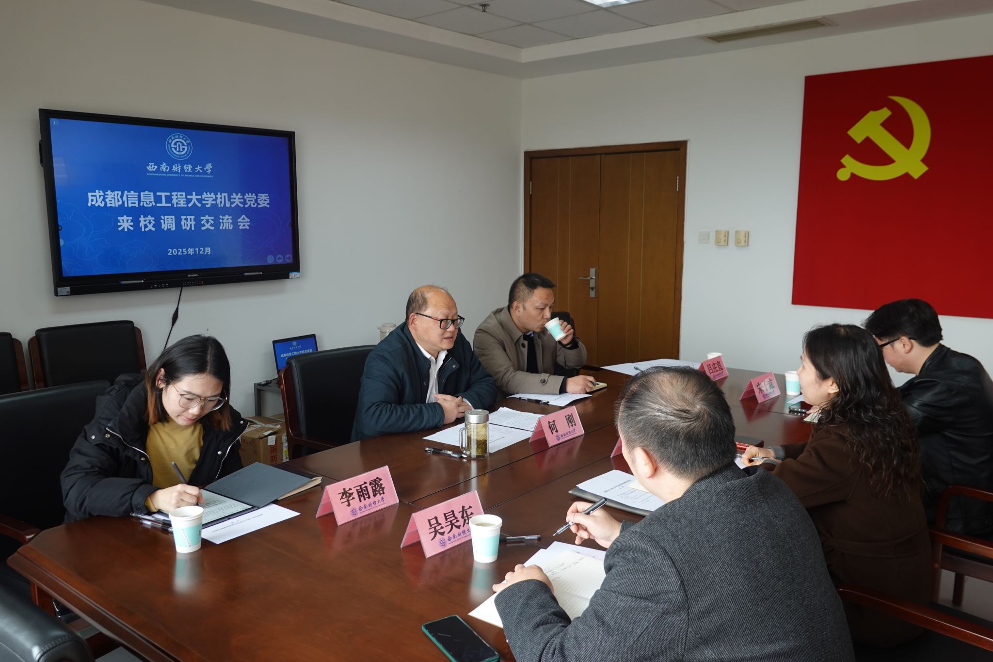 12月16日,成都信息工程大学机关党委书记张小红一行3人来校调研交流高校机关党建工作。我校机关与直属单位党委书记何刚主持交流会,机关与直属单位党委副书记、纪委书记曾双宝及相关工作人员参加交流。