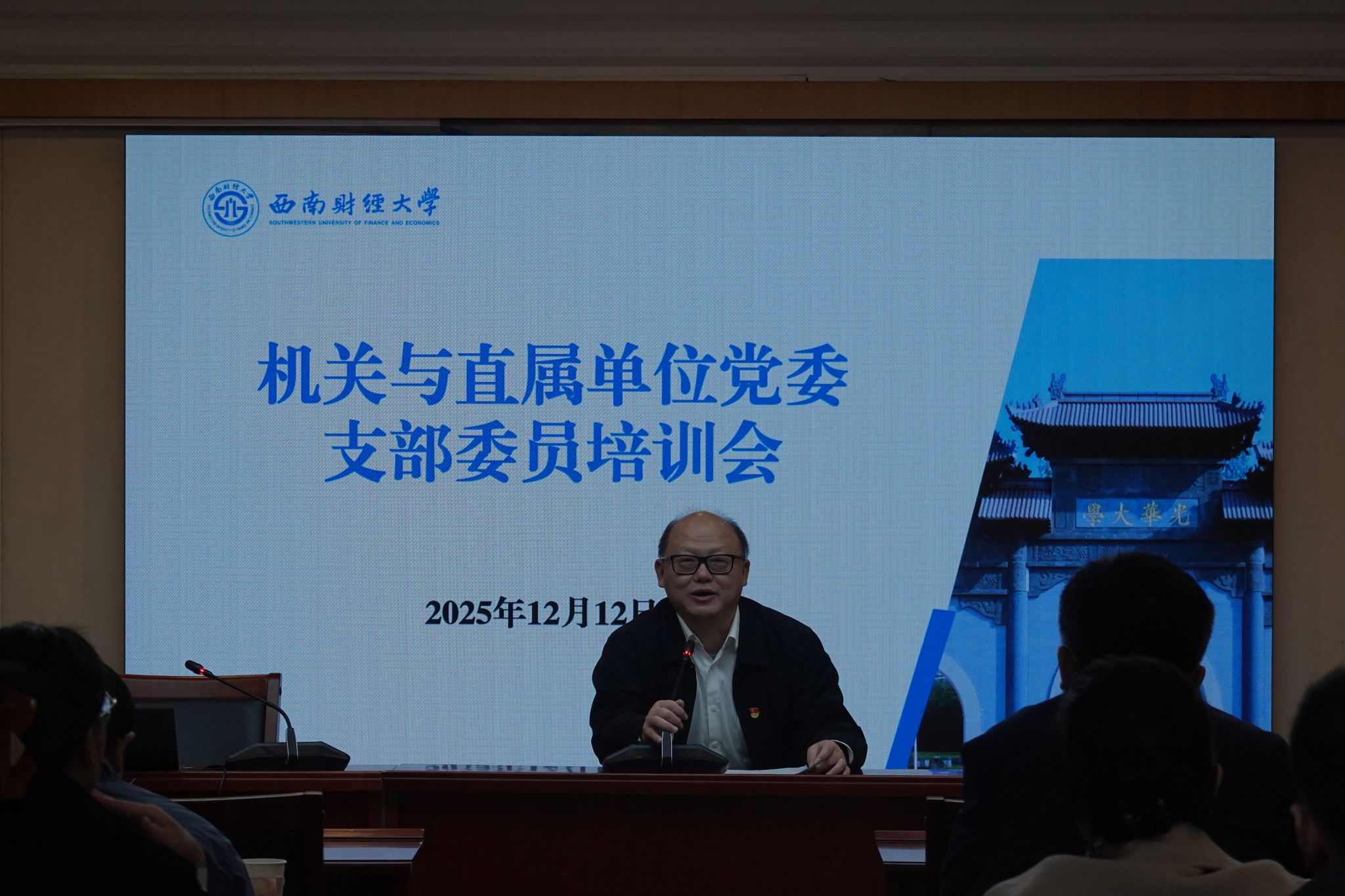 为深入贯彻党的二十届四中全会精神,进一步提升机关与直属单位党支部委员党务工作能力,增强“两个功能”,推动“一融双高”,机关与直属单位党委于12月12日举行党支部委员党务培训会,学校党委常委、党委组织部部长梁婷出席并做报告,机关与直属单位党委书记何刚主持会议并讲话,机关与直属单位党委副书记曾双宝以及各党支部新任支委、党务工作者60余人参加培训。