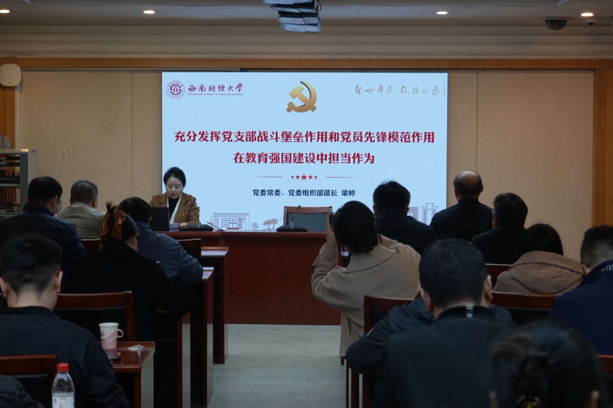 梁婷做了题为《充分发挥党支部战斗堡垒作用和党员先锋模范作用 在教育强国建设中担当作为》的专题报告。她在报告中深刻阐述了党支部的使命定位,强调要树牢大抓基层的鲜明导向,准确把握加快教育强国建设的新要求。她指出,党支部是党的全部工作和战斗力的基础,必须坚持和加强党的全面领导,充分发挥战斗堡垒作用,引导党员在教育改革、人才培养等中心工作中担当作为。