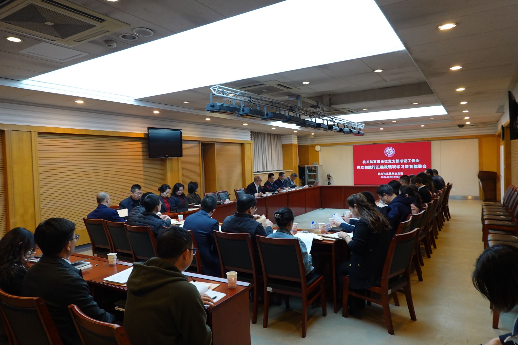 3月10日,机关与直属单位党委在腾骧楼101会议室召开党支部书记工作会,传达学习学校党的建设和全面从严治党工作领导小组(扩大)会议精神,启动部署机关与直属单位党委开展树立和践行正确政绩观学习教育。机关与直属单位全体党支部书记参加会议,机关与直属单位党委书记何刚主持会议。